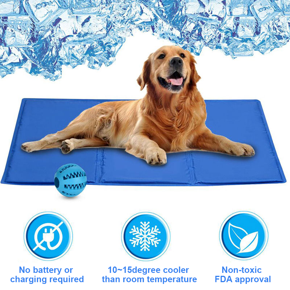 Pet Cooling Mat Foldable Puppy Ice Mat Blue Double-layer Pressing Ice Pad Machine Washable Summer Reusable Training Pad For Dog Size L