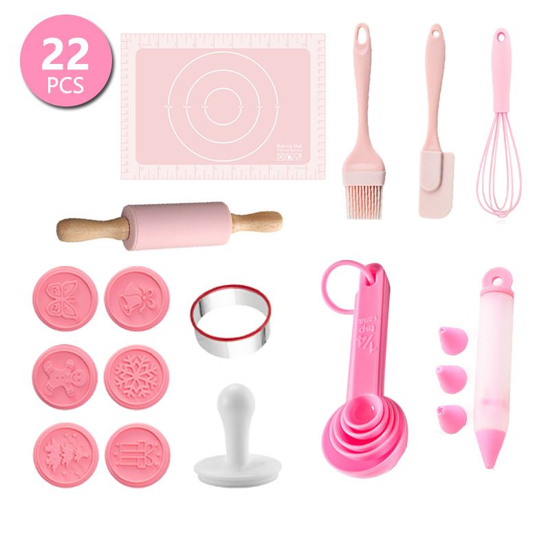 Pink 22 PCS Mini Baking Set Silicone Cake Mold, Cookie Mold Silicone Spatula Set for Baking