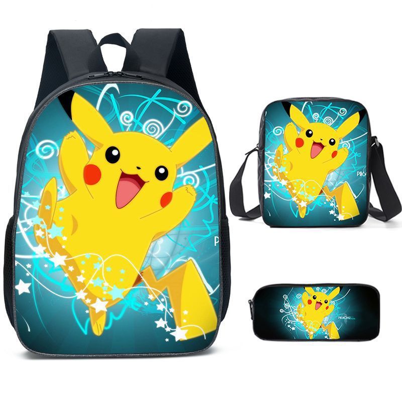 Pokemon Schoolbag Cartoon Cute Pikachu Primary School Student Backpack+Shoulder Bag+Pencil Case