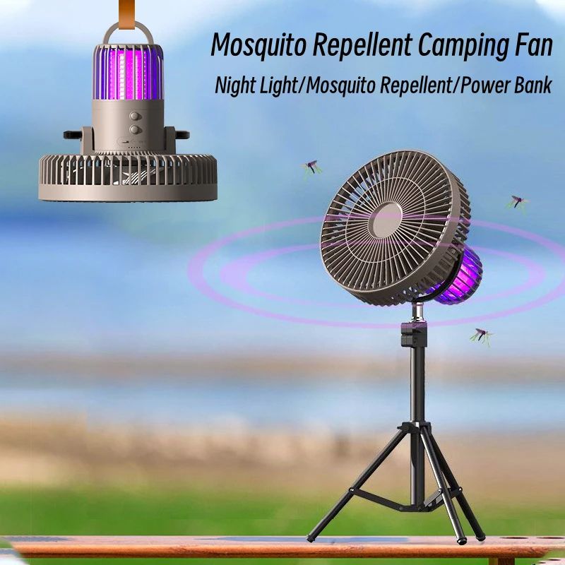 Portable Camping Fan with Mosquito Repellent Lamp And Retractable Tripod 8000mAh Outdoor Rechargeable Floor Fan Camping Supplies