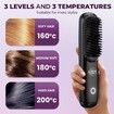 Portable Cordless Straightener Brush with 3 Setting LCD Temperature Display,Fast Heat-up Electric Negative Ions Ceramic Hot Comb Color Purple