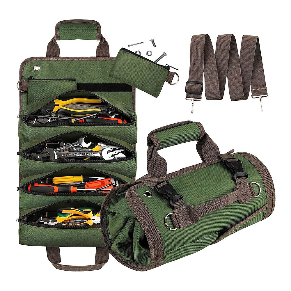 Portable Tool Storage Box with 2 Detachable Zipper Pouch, Tool Organizer Bag Roll Up Carrier Bag for Electrician Mechanic (Green)