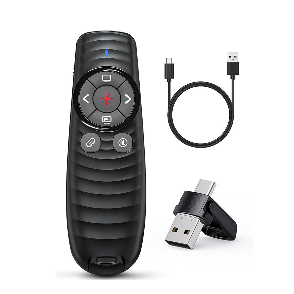 Presentation Clicker Wireless, 2 in 1 USB/Type C Rechargeable Presenter Remote Control for PowerPoint, PPT Clicker Red Laser Pointer, Slide Advancer RF2.4GHz (Red Light, USB C Rechargeable)