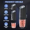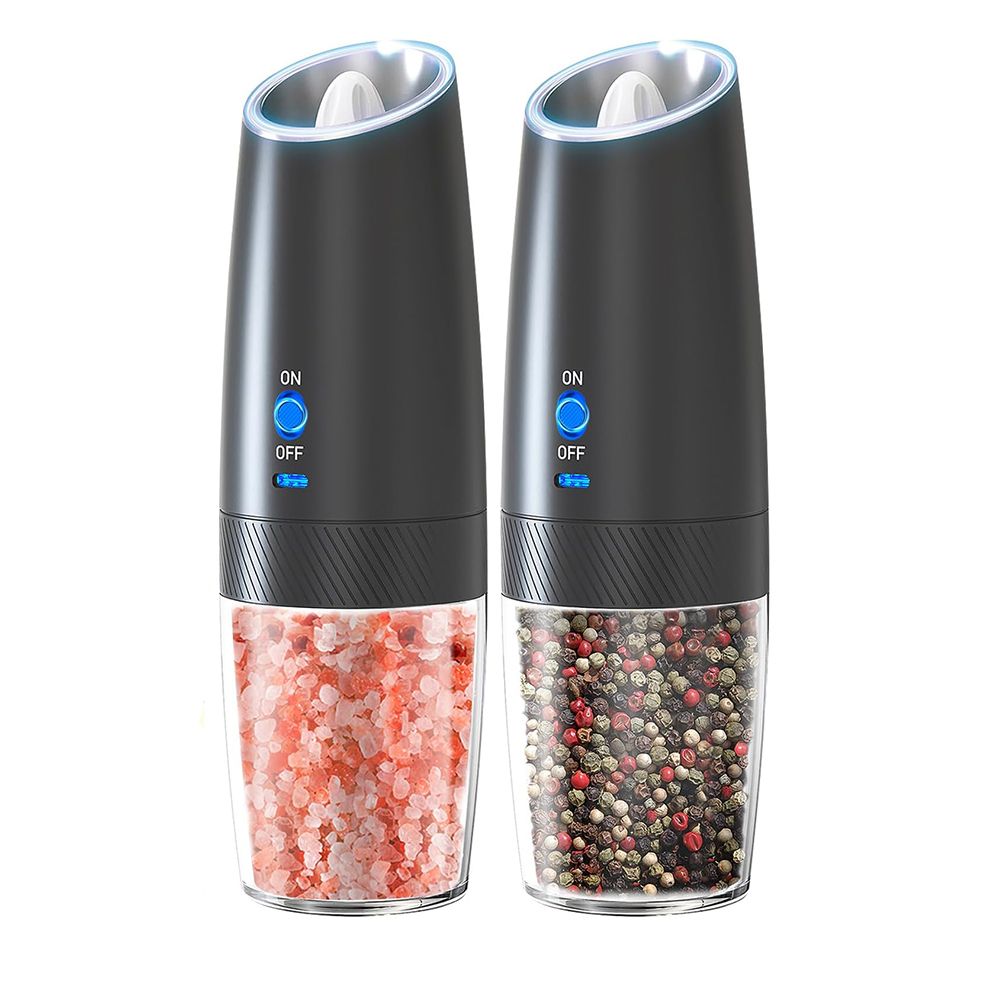Rechargeable Gravity Electric Pepper and Salt Grinder Set, Adjustable Coarseness, With LED Light, One Hand Automatic Operation, 2 Pcs, Black