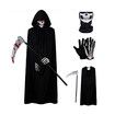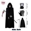 Scary Halloween Ghost Reaper Costume, Hooded Cloak, Skull Mask, Gloves,Horror Grim Reaper, Halloween Decoration for Kids(125CM)