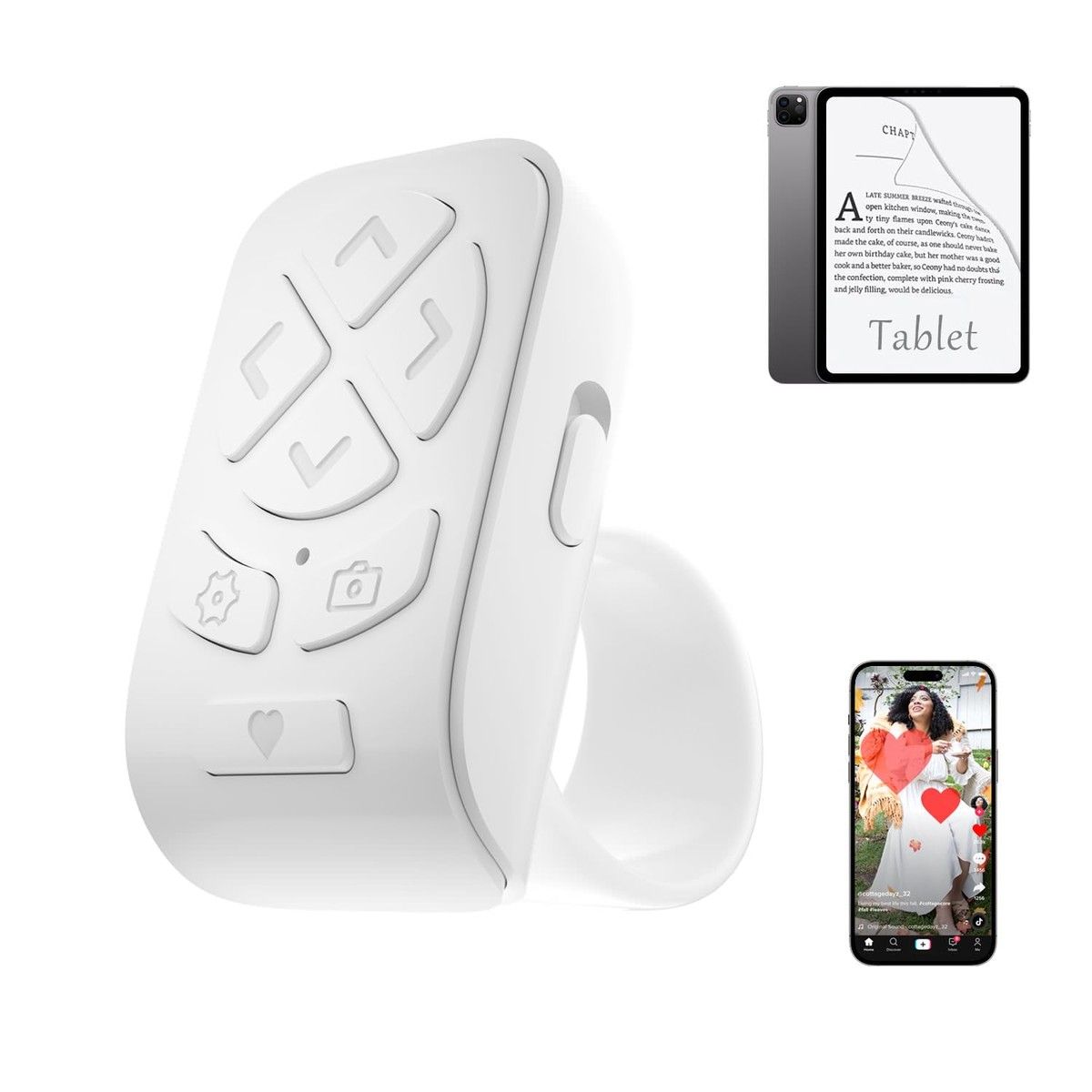 Scrolling Ring Remote for TikTok YouTube Instagram Shorts Video,Scroller Page Turner Clicker for Kindle APP,Remote Shutter Control,White