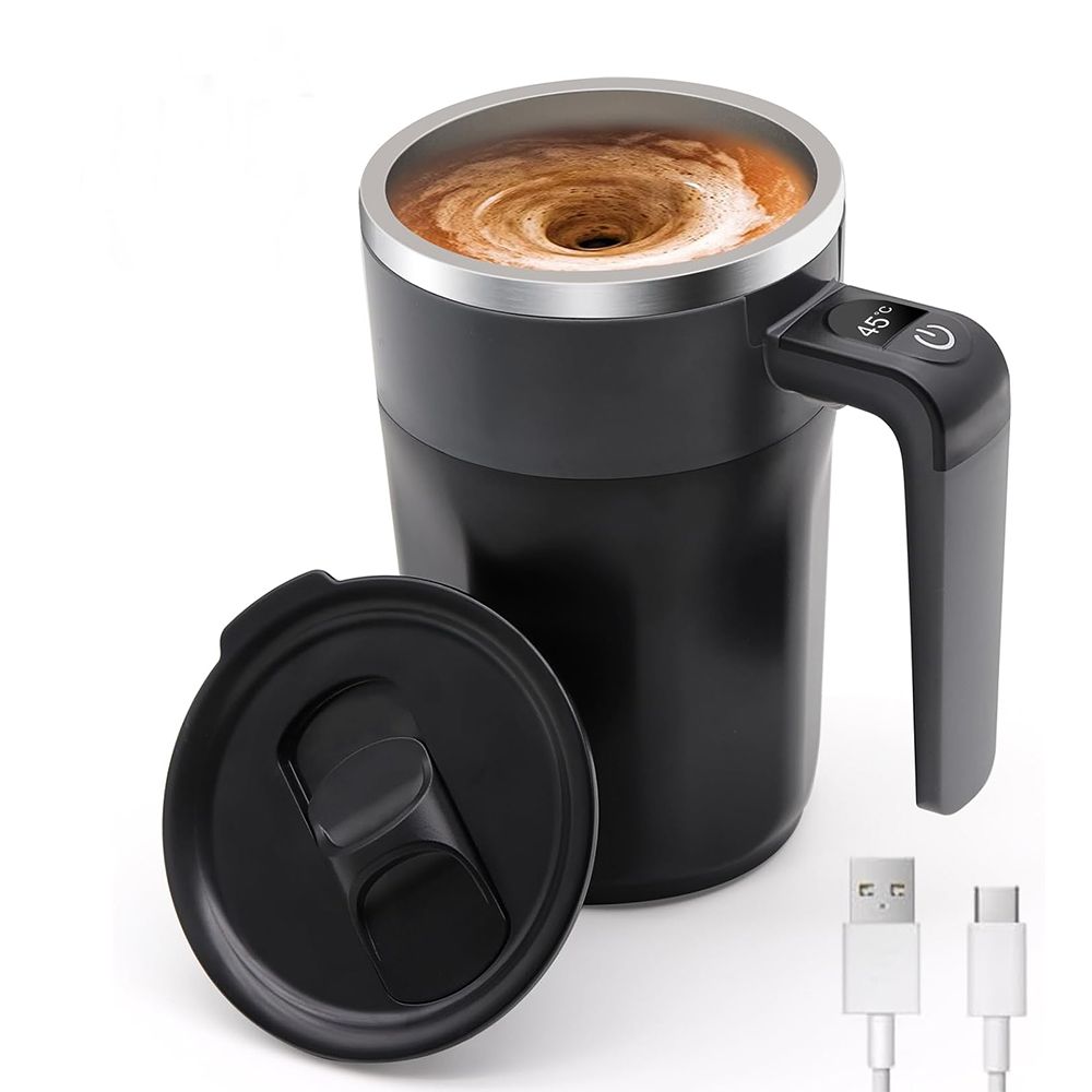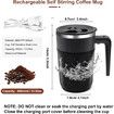 Self Stirring Coffee Mug with Temperature Display, Rechargeable Electric Magnetic Auto Stirring Coffee Mug with Lid for Coffee and Milk, Black