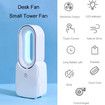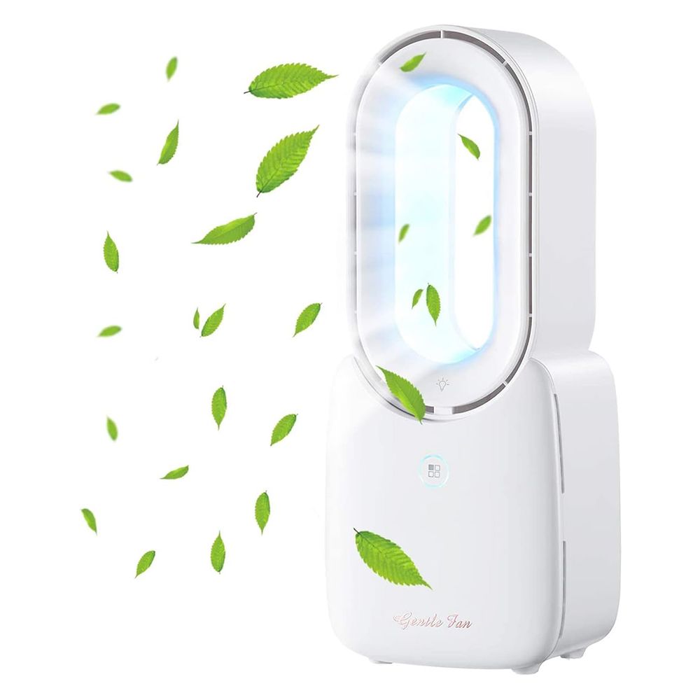 Small Bladeless Desk Fan, 4 Winds 5 Lights Air Circulator, Portable Rechargeable Battery Operated Silent Table Air Cooler, Personal Desk Cooler Bedside White