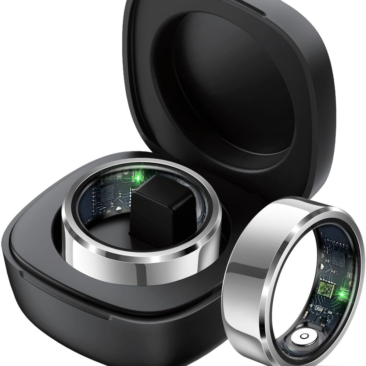 Smart Ring Waterproof Fitness Tracker Rate Monitor Sleep Recorder Activity Reminder with Charging Case,Pedometer Step Counter Calories(Silver,#9)