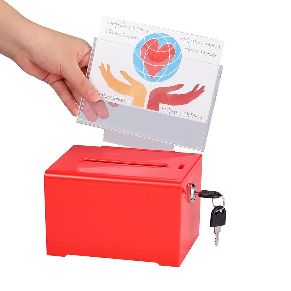 Suggestion Box with Slot and Lock, Acrylic Donation Box for Fundraising, Drawing Box for Raffle, 14 x 12.5 x 18CM voting box, Red