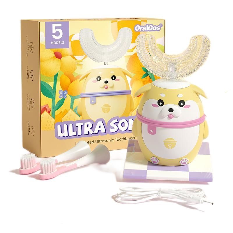 Ultrasonic Kid U-Shaped Electric Rechargable Toothbrush 2 U shape head 4 Brush Heads, 60S Smart Reminder Ages 6-14