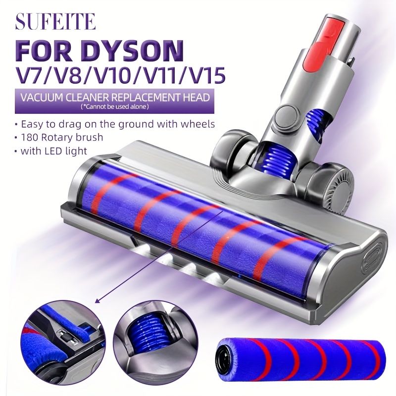 Vacuum Cleaner Motorhead,Compatible With Dyson V7 V8 V10 V11 V15 V8slim Soft Roller Brush Head with LED Lights,V Shape Turbo Bristle