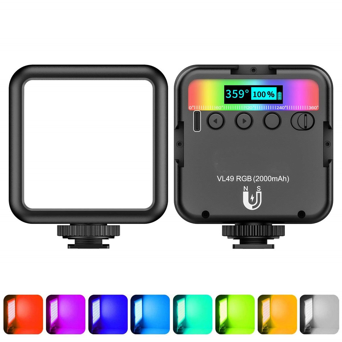 VL49 RGB Video Lights LED Camera Light 360° 2000mAh Rechargeable Dimmable Panel Lamp Support Magnetic Attraction(1 Pack-Black)