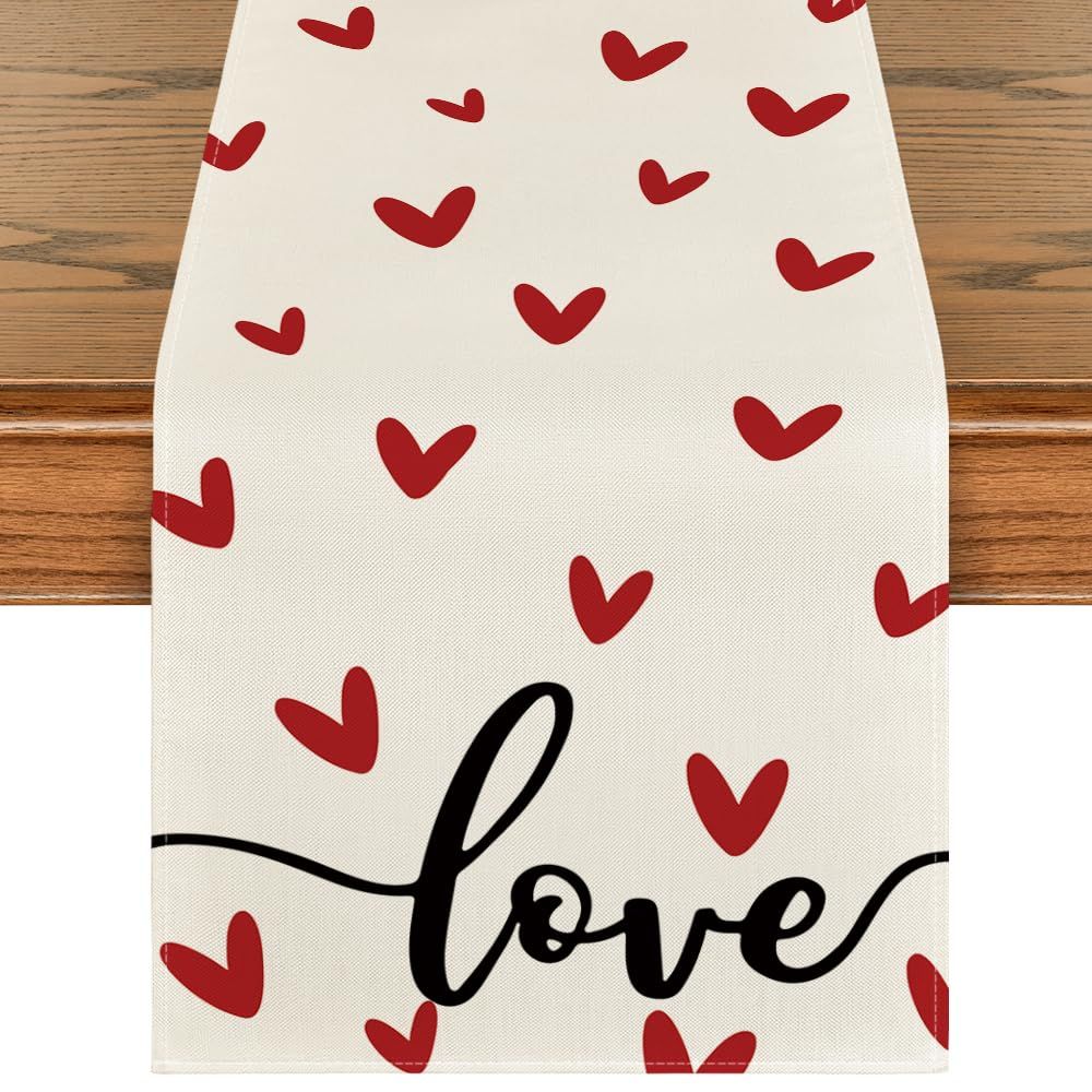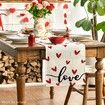White Love Valentines Day Table Runner,Seasonal Anniversary Kitchen Dining Table Decoration for Indoor Home Party 13x72 Inch