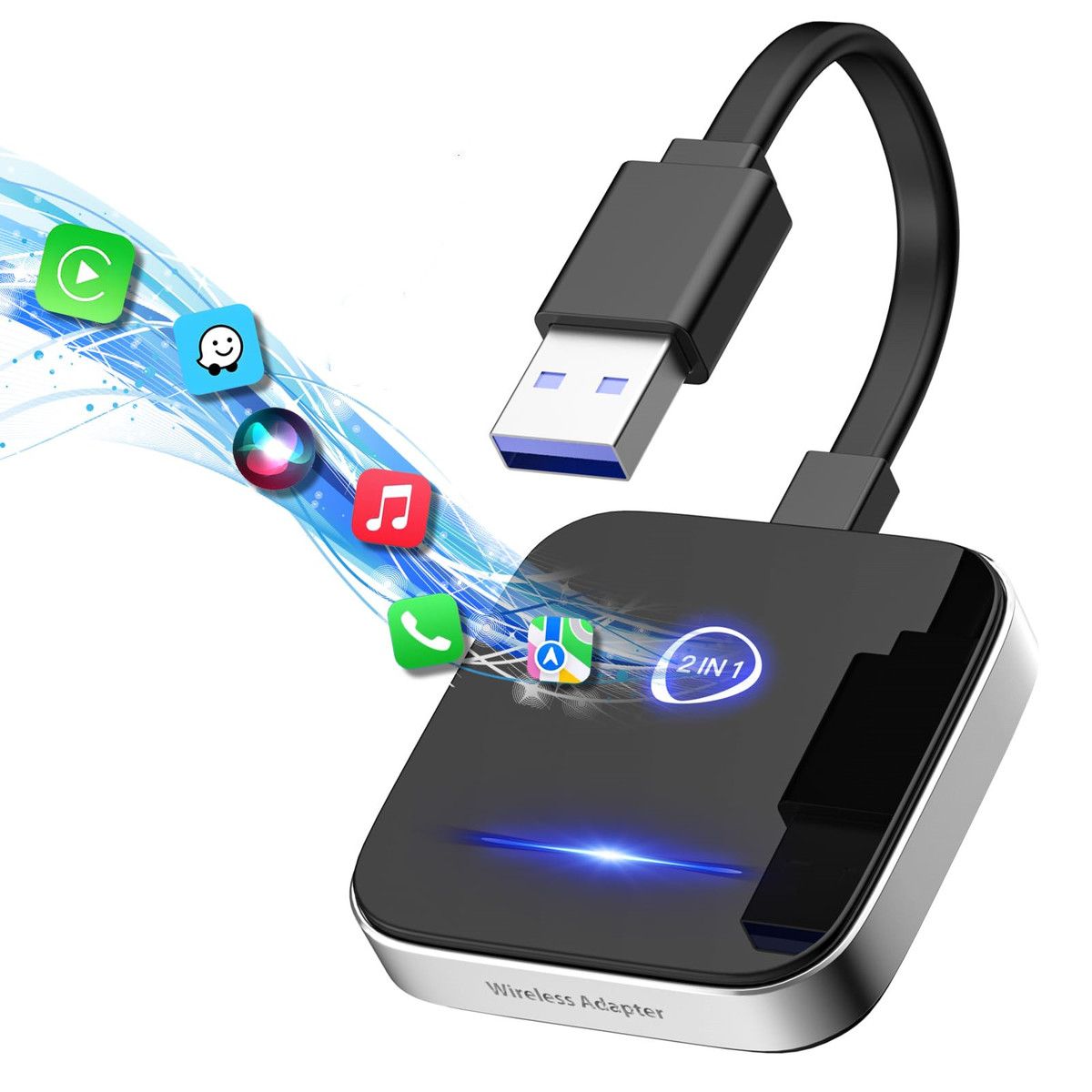 Wireless Carplay Adapter Android Auto Wireless Adapter 2 in1 Converts Wired to Wireless Carplay Dongle Plug for iPhone/Android Auto for Cars from 2017