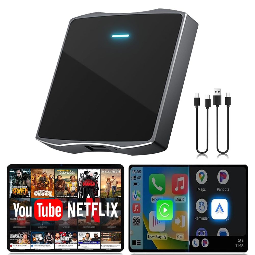 Wireless CarPlay Adapter, Support Netflix/YouTube/TF Card Plug and Play Dongle with Apple Car Play Wireless Adapter Android Auto